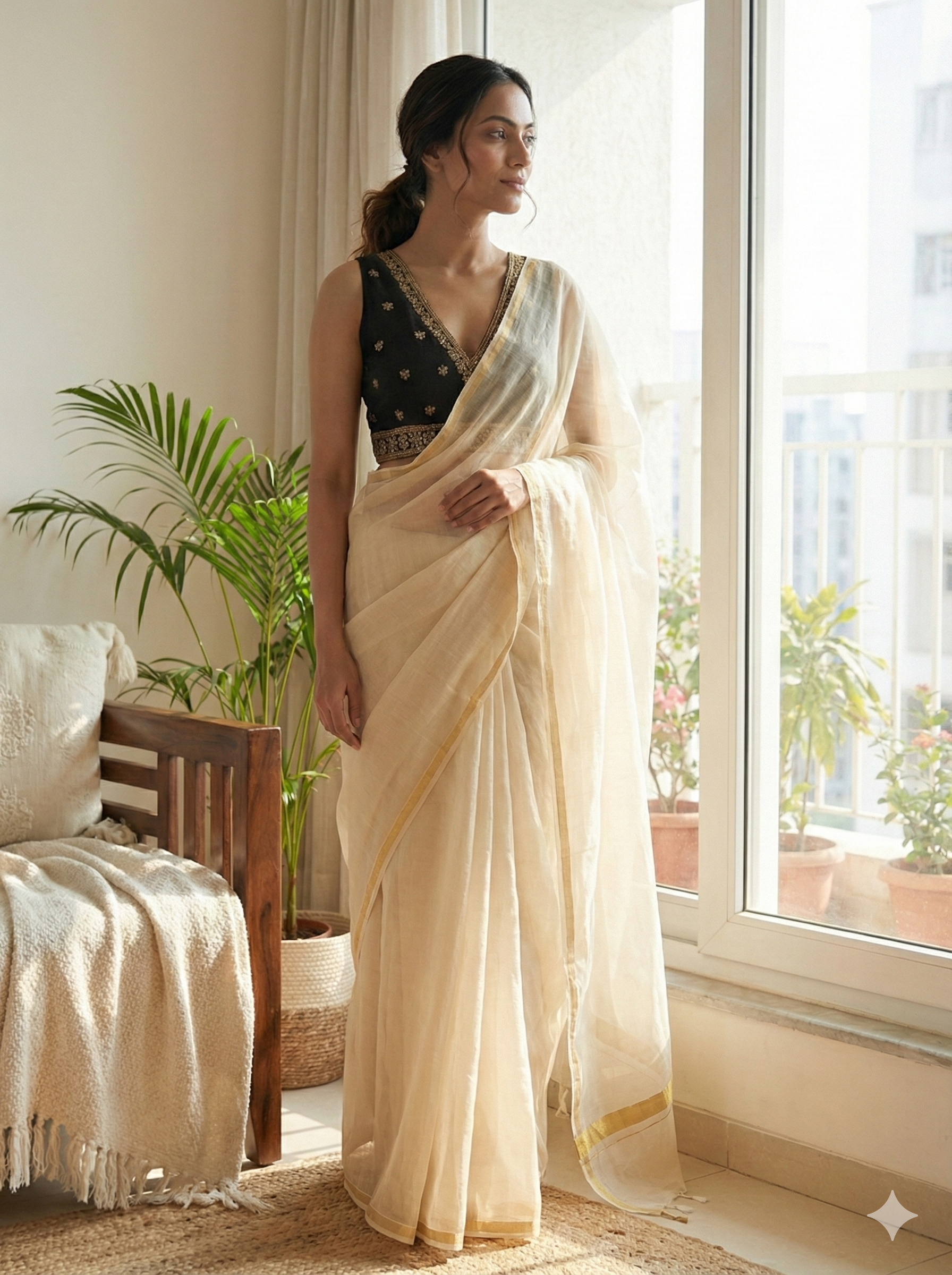 The Radha Blouse brings understated elegance with its delicate embroidery on the neckline and waist band. Crafted in cotton satin, this piece features cut sleeves with attachable half sleeves and padded comfort, making it a versatile choice that pairs beautifully with both traditional and contemporary sarees.