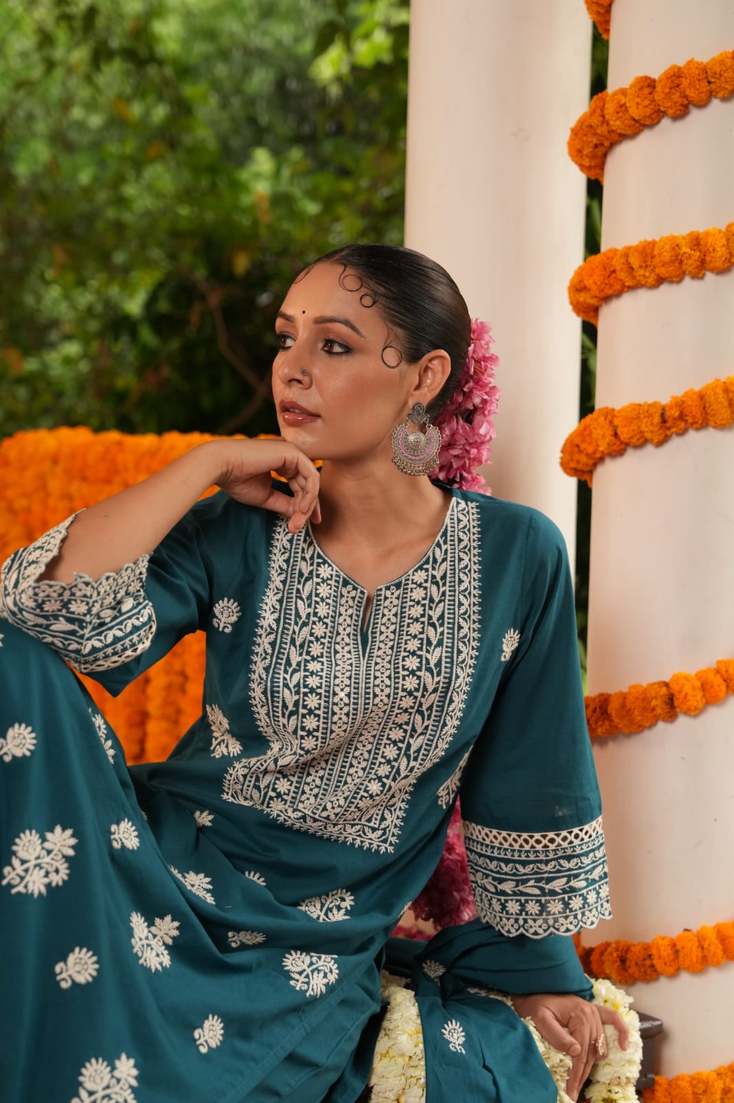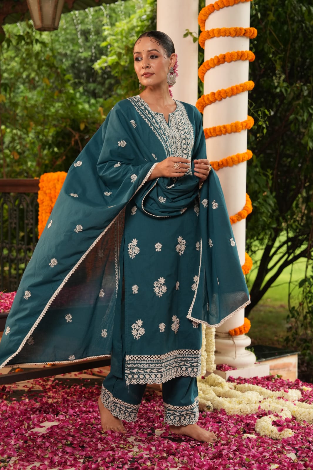 Elegant and intricately detailed, the Deep Suit Set is a celebration of refined craftsmanship. This 3-piece ensemble features a beautifully embroidered kurta, paired with a matching pair of pants and a dupatta, all crafted in a soft, breathable fabric for all-day comfort.