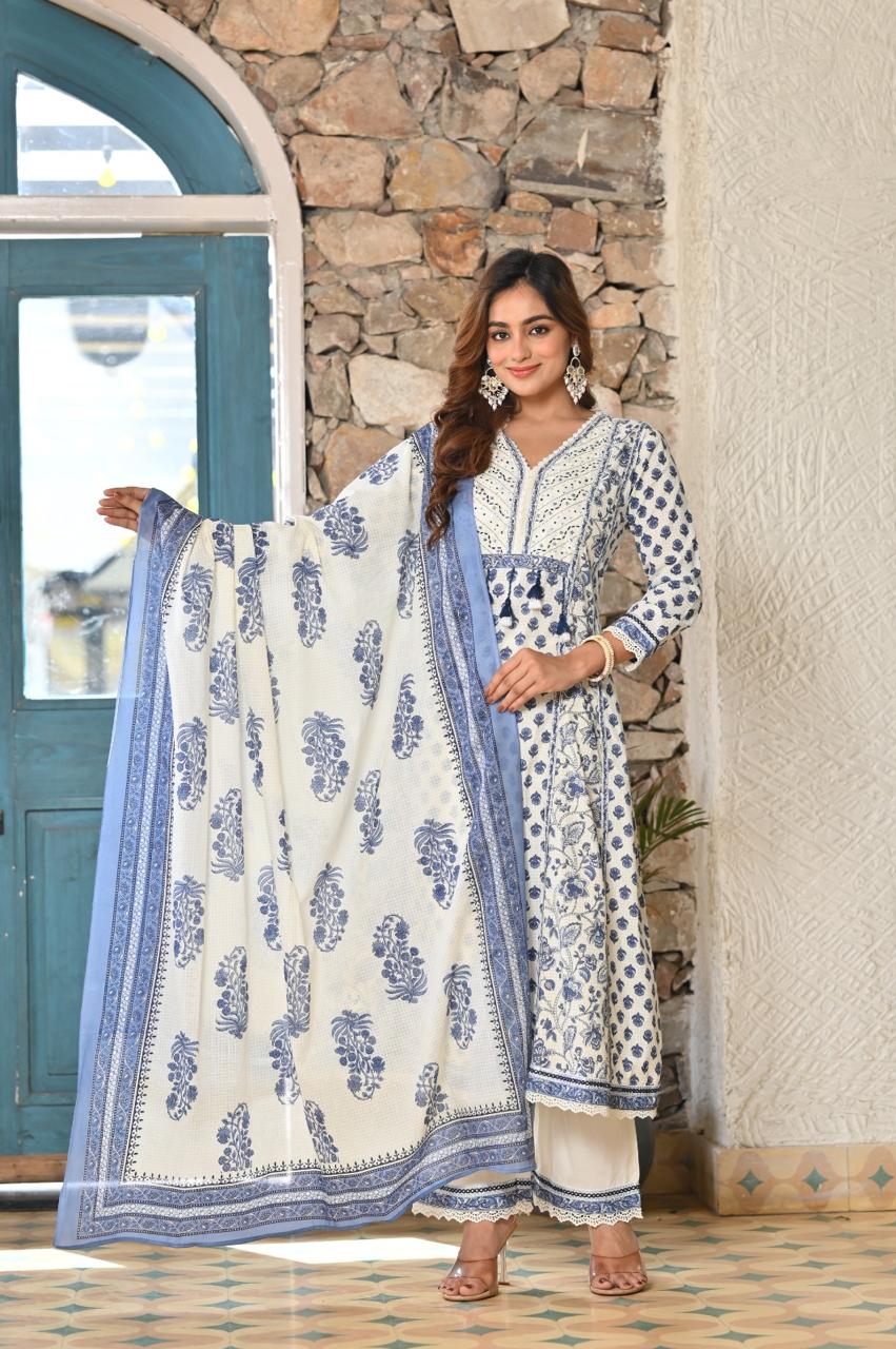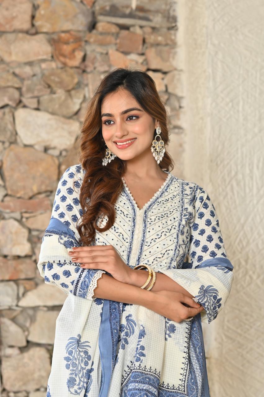 Effortlessly elegant, the Roohi Suit Set is crafted in soft, breathable cotton—perfect for everyday sophistication. The kurta features delicate handwork around the neckline, beautifully complementing its subtle all-over print.
