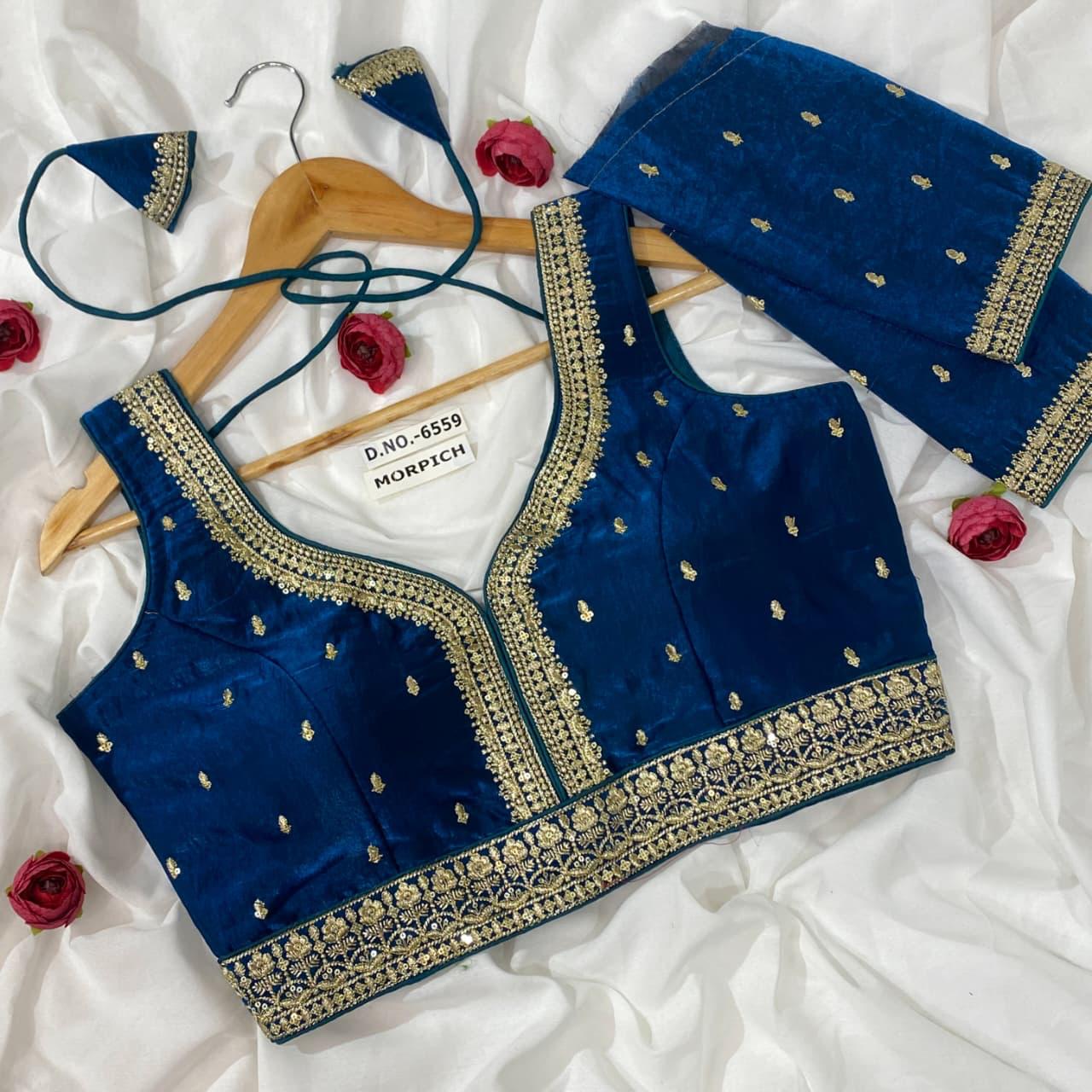 The Tvesa Blouse in rayon silk combines comfort and versatility. It comes with cut sleeves and an optional attachable half sleeve, making it adaptable for various looks. With small ditsy embroidery and border detailing, this blouse pairs beautifully with both printed and plain sarees.