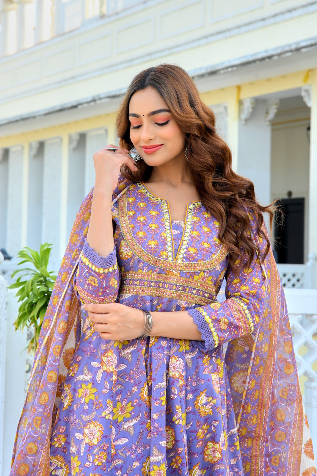 Bright, breezy, and full of charm — the Suhani Suit Set is crafted in soft cotton and adorned with a flowy floral print that’s both elegant and effortlessly eye-catching. Designed in a soothing, standout color palette, this 3-piece ensemble includes a printed kurta, pant, and dupatta, making it perfect for those who love comfort without compromising on style.