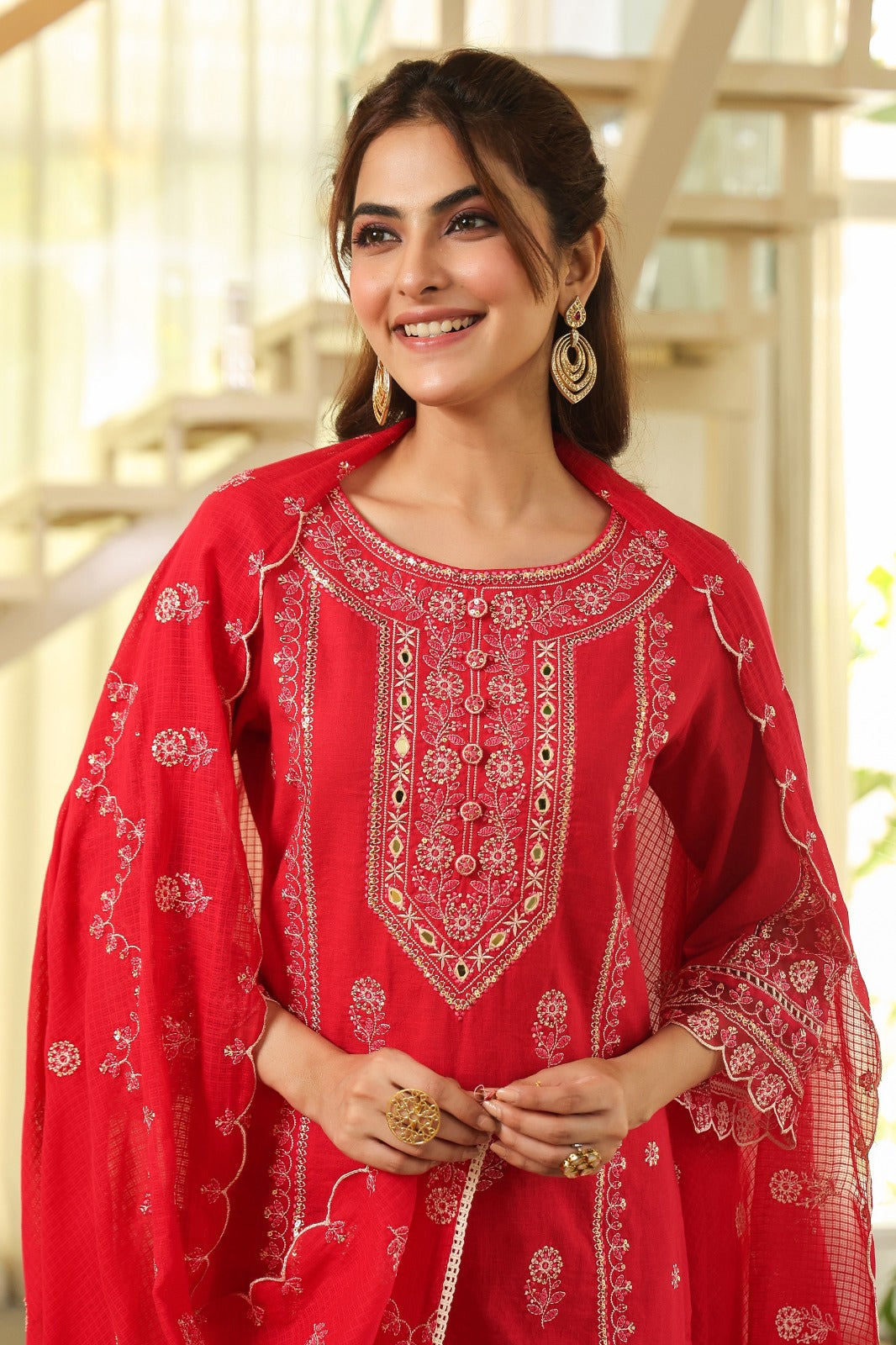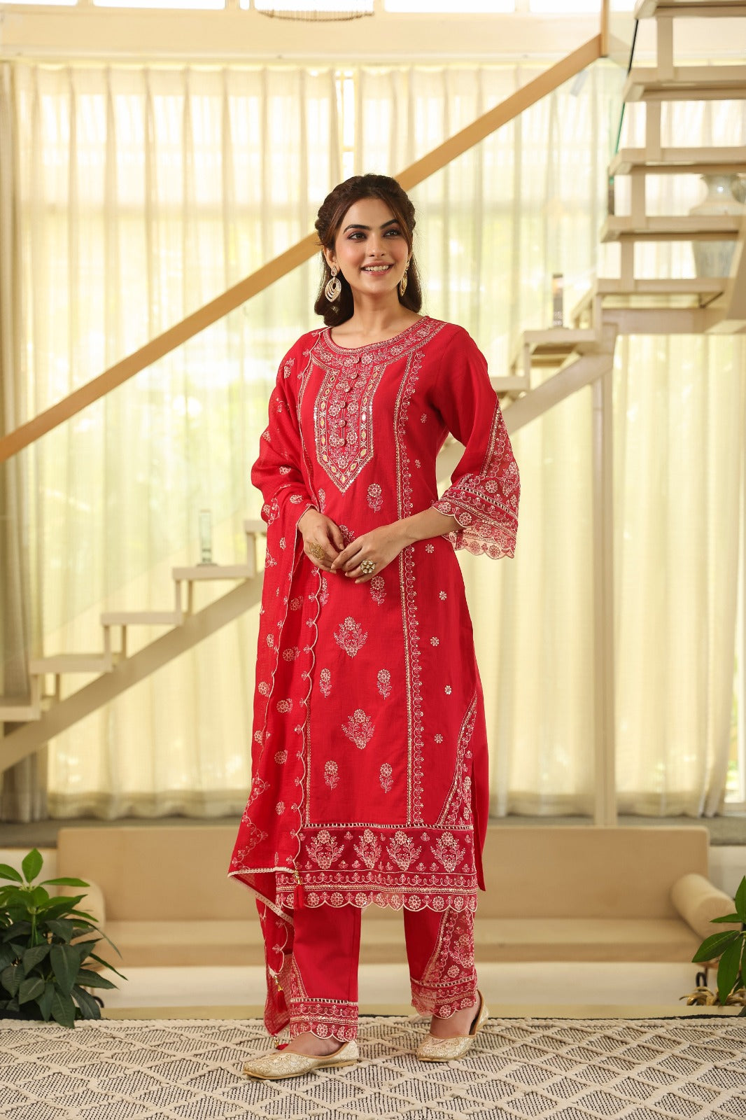 Bright, festive, and full of charm, the Kesar Suit Set is a beautifully crafted 3-piece ensemble designed to make a subtle yet striking statement. The kurta features all-over embroidery, offering rich texture and intricate detailing that’s perfect for special occasions.
