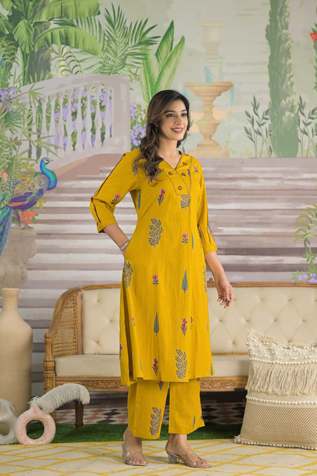 Printed with soft, earthy motifs and paired with a comfortable straight pant, this set is ideal for workwear, casual gatherings, or slow festive days when simplicity speaks loudest.